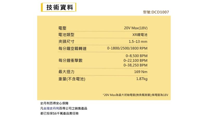 | 電壓 | 20V Max*(18V) |