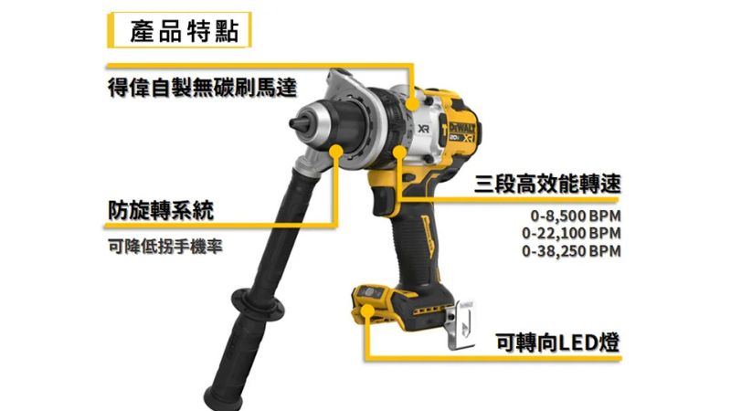 - 震動頻率:最高可達 38,250 BPM,能快速應對混凝土與石材鑽孔。