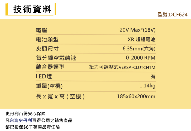 | 夾頭尺寸 | 6.35mm( 六角 ) |