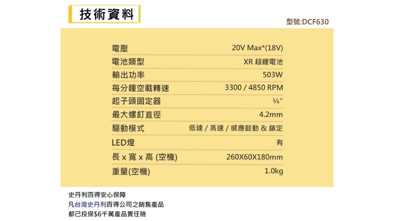| 電壓 | 20V Max(18V) |