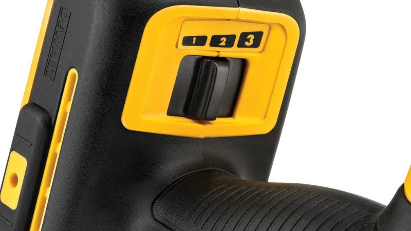 - 三段變速切換 (3-Speed Selector):機身底座設有實體開關,可直接限制最高轉速: