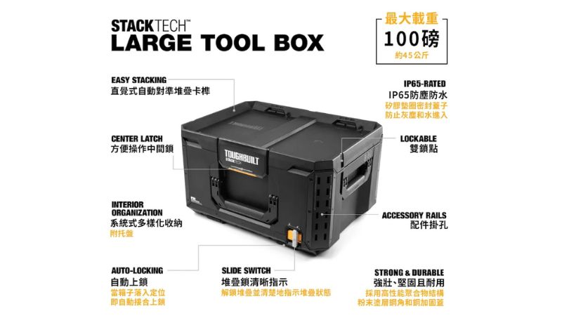 - 單手中心閂鎖: 專利閂鎖設計,單手即可快速解鎖,且附有明顯的鎖定指示燈 (綠色/紅色) 以確認堆疊安全性。