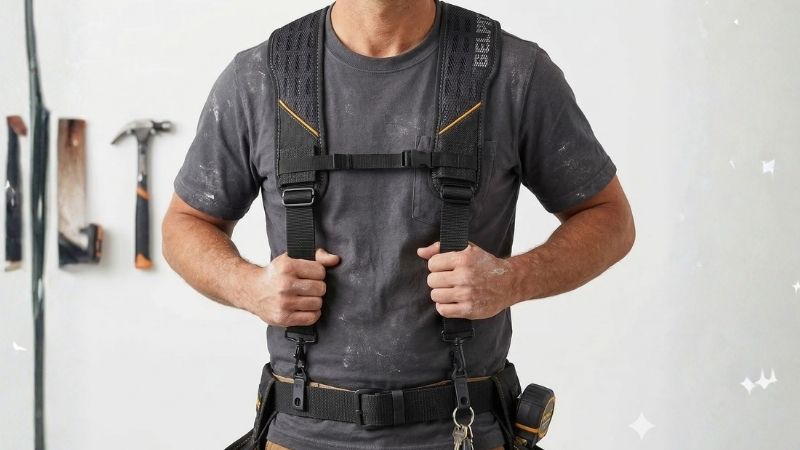 TB-CT-51G 是由美國品牌 ToughBuilt (托比爾) 專為長時間背負重型工具設計的 新款透氣型雙肩減壓背帶 (GelFit™ Padded Suspenders)。它採用四點式設計,能有效分散腰帶重量,減少腰部負擔。